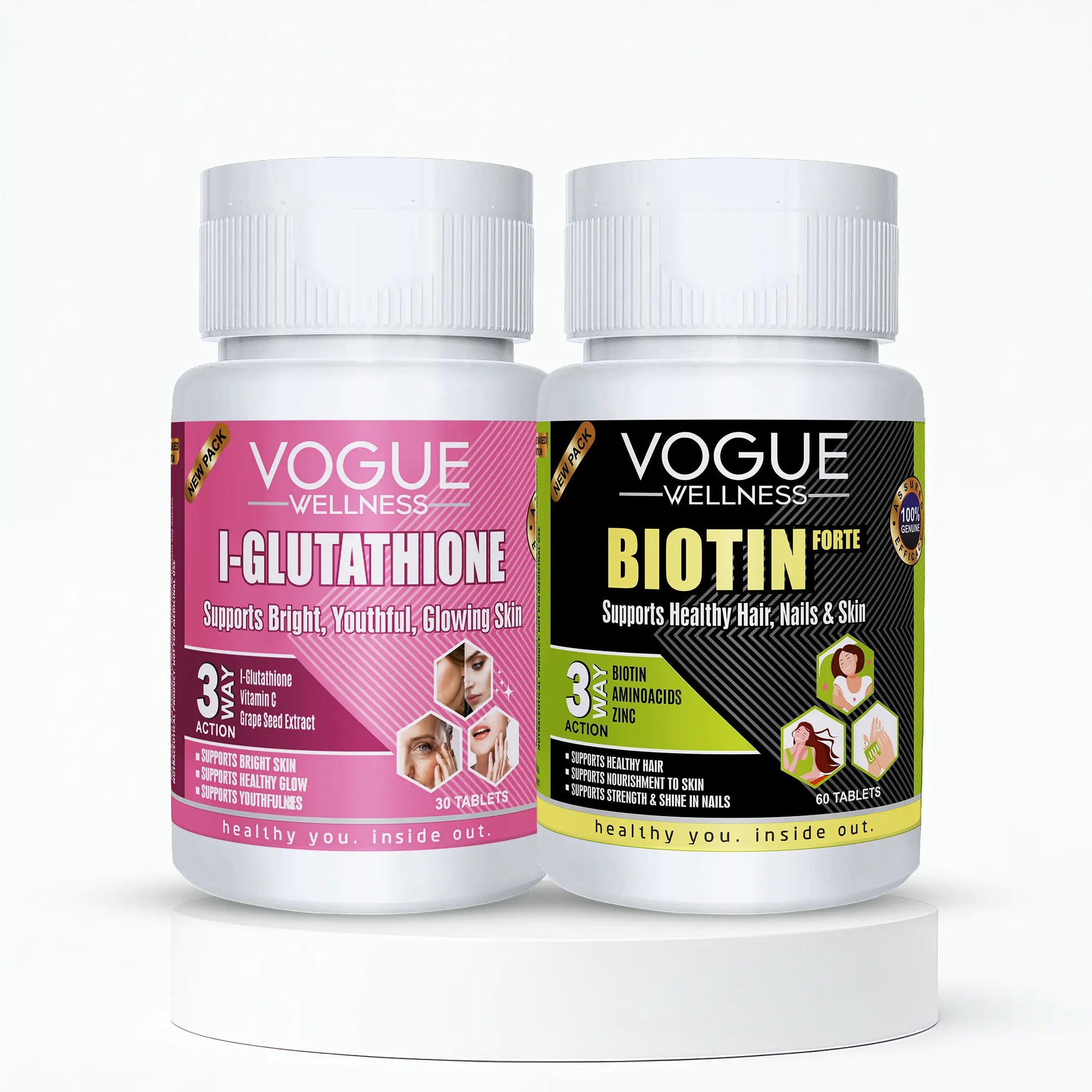 Biotin 60 Tablets & L-Glutathione 30 Tablets Combo | Healthy Hair, Skin Glow & Strong Nails