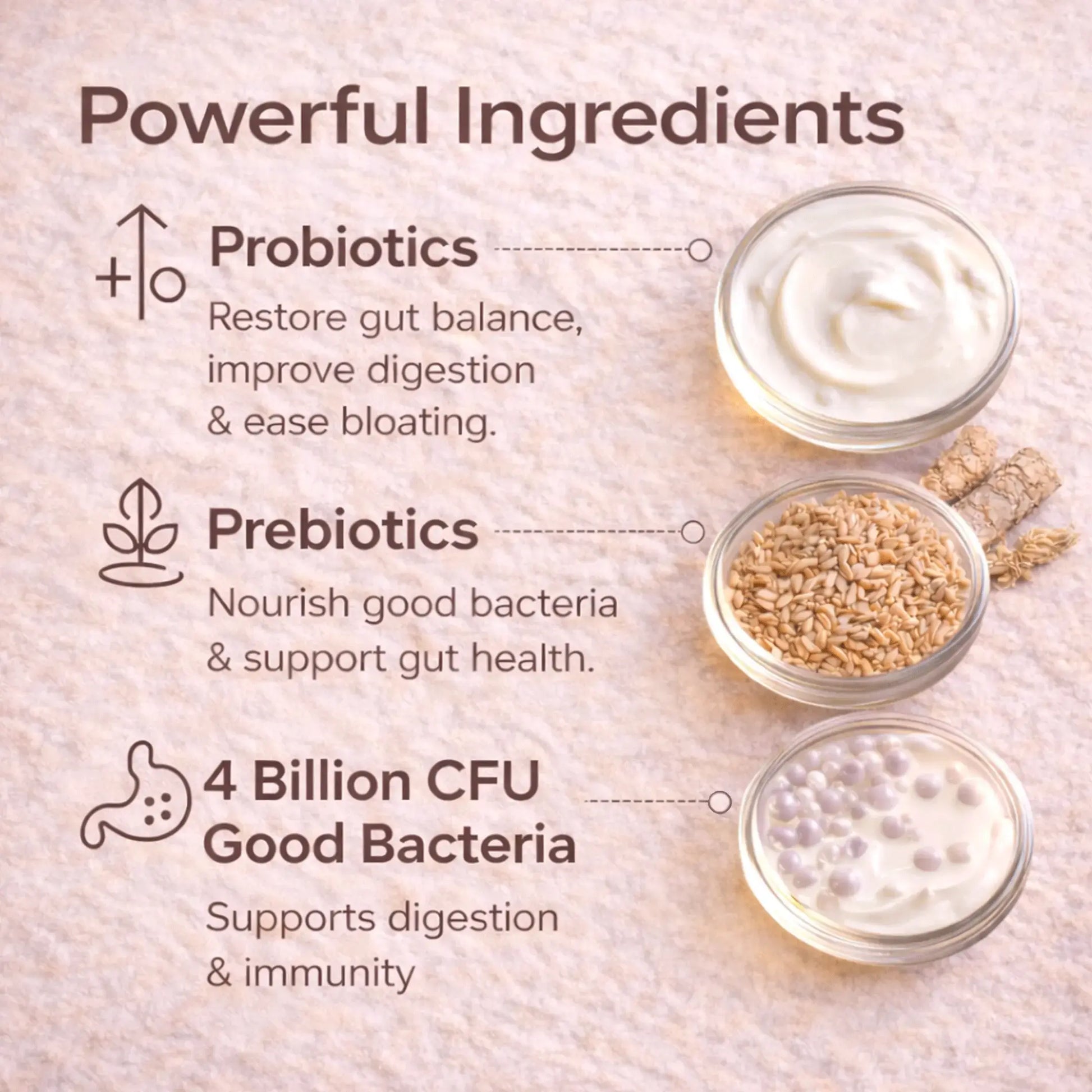- Balances Gut Flora - Restores healthy bacteria after antibiotics